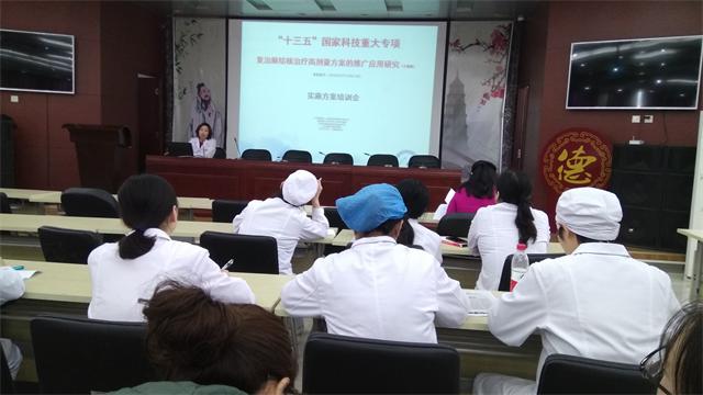 培训前副院长仵倩红讲到课题开展的重要意义及培训的过程的要求,希望临床、医技人员认真学习,掌握要点,并宣布“十三五”国家重大专项三项科技项目在我院正式启动。接着刘红艳主任进行“复治肺结核治疗高剂量方案的推广应用”项目培训、石海萍主任进行“耐药结核病治疗新方案和新技术的研究及评估”项目培训、王亚梅主任进行“复治肺结核病治疗新方案中远期疗效随访和推广应用的多中心临床研究”子课题1——复治肺结核病治疗新方案的临床研究项目培训,三位主任分别从项目研究目的,方案设计,入选、排除、退出、剔除标准,治疗方案,有效性、安全性评价、CRF表填写、电子信息录入等方面对项目实施方案进行深入解读。
