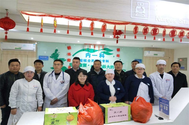 紫燕衔瑞终南至,金猪抱福翠华来。 2月4日下午,迎着浓浓的年味,我院院长刘锦程带领班子成员及部分行政职能科室负责人深入科室,看望并慰问春节期间奋战在一线岗位上的医务工作者,感谢大家的辛苦付出,向大家致以新春祝福,并通过他们向全院在春节期间坚守岗位的干部职工及家属致以新春的美好祝愿! 慰问小组逐一走访了临床、门诊、医技检验及后勤保卫等科室,看望节日期间依然坚守岗位的工作人员。每到一处,院领导都与坚守在一线值班的工作人员一一握手,亲切地嘘寒问暖,感谢大家为了住院患者的健康一如既往地默默奋战,同时嘱咐大家要认真履责,做好春节期间的医疗救治工作,预防各类突发事件,为全院患者的健康安全提供坚强保障,确保大家共同度过一个欢乐祥和的春节。