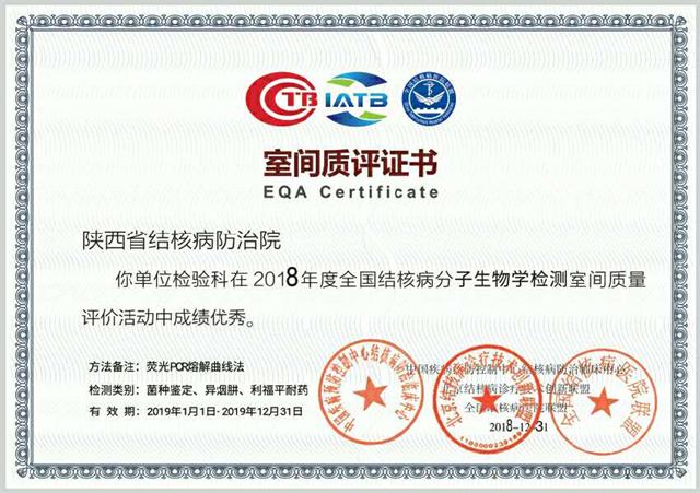我院是陕西省结核病防治定点单位、陕西省结核病医院联盟主委单位、陕西省结核病临床诊疗质控中心,近年来我院院领导高度重视结核实验室的能力建设、强化实验室的规范化、标准化和信息化管理,2018年进行实验室改造,顺利建成高标准、规范的P2+负压实验室,实现了对工作人员、环境、样本污染的规范化管理。PCR实验室购置了X-Pert、RNA、TB-NTM等分子检测设备,严格按照《临床实验室管理办法》标准分为四区,顺利通过了省卫计委PCR实验室备案;加强了工作人员培训,在PCR实验室工作的4名人员均取得了PCR实验室上岗证,进一步提高了结核病实验室的分子检测能力和水平。在2018年度全国结核病分子生物学检测室间质量评价活动中,我院检验科人员在梁亚萍主任带领下严格按照实验标准规程操作,充分发扬严谨、求实、精益求精的工作精神,团结一致,细致认真,最后获得了全国分子生物学检测室间质评优秀证书。