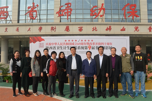 金秋十月,丹桂飘香。为隆重庆祝中华人民共和国成立69周年暨改革开放四十周年,由陕西省杏林书画研究会和陕西省卫生思想政治工作促进会联合举办的“不忘初心、牢记使命”第九届陕西省卫生计生医药系统书画摄影展于2018年10月17日上午在陕西省西北妇女儿童医院举办。我院党委书记甘昭平、院长刘锦程带领医院书画摄影爱好者一行十余人参加了此次展览活动。