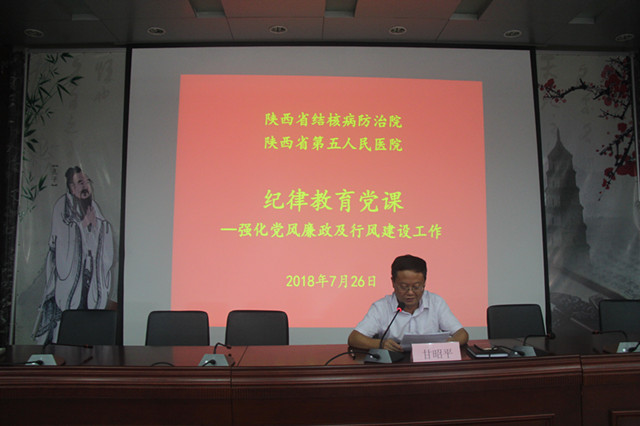 甘昭平书记结合当前吉林长春长生生物疫苗事件以及医疗卫生行业性质和特点,针对我院下半年党风廉政建设及行风建设工作实际,重点从“心中有法,规矩从业;心中有民、务实敬业;心中有责、勇于担当;心中有戒、敬畏法纪”四个方面进行了廉政纪律教育,进一步提高党员干部树立廉洁从业意识,增强拒腐防变的预防能力,共同打造风清气正、医患和谐的医疗生态环境。