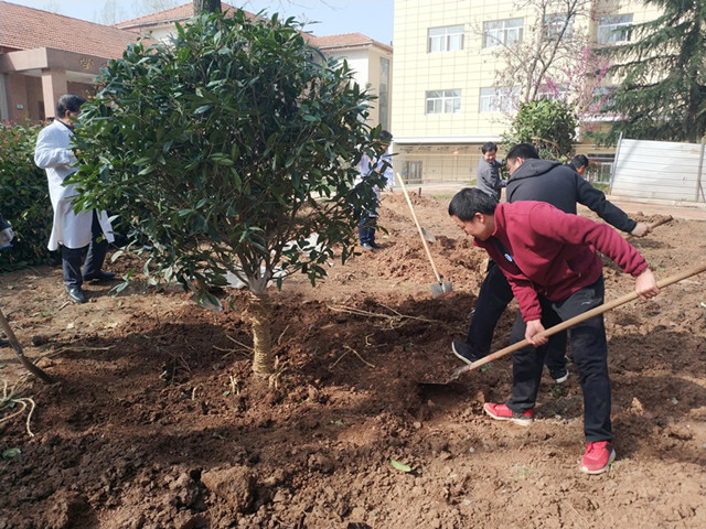 十里春风,春回大地,万物复苏,又是一年芳草绿,又是一年植树时。3月22日上午,我院领导班子带领行政后勤干部职工在院内义务植树,以实际行动贯彻落实把我院打造为“花园式医院”的理念,营造绿色环境,建设幸福家园。