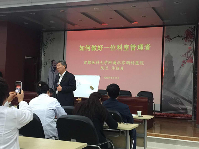 许院长从自己30多年的医院管理经验中提取积累了“如何做好一名科室管理者”,指出科室管理者的态度决定科室发展进步,科室管理者要有岗位主人翁精神“心大—多想一点、包容—听得见意见、比同志多奉献多努力一点”才是正确的履职态度、作为科室管理者要有“自发、自主、自动、持久的学习习惯”、要有“树形象、暖人心、去顾忌习惯和能力”……许院长语言诙谐精辟,常常引起大家的掌声和欢笑,更激发了各位科主任和护士们对照自己,检讨自己,进一步提高自身业务和管理水平和发展科室的决心。