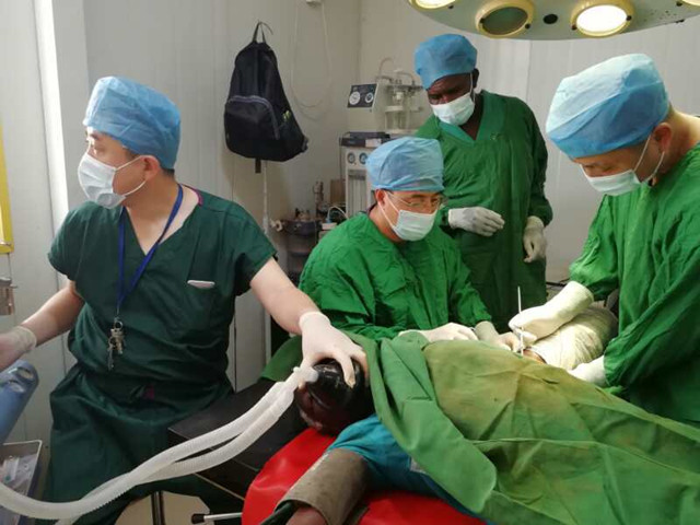 面对热情而贫穷的当地民众,我们努力克服语言交流障碍、医疗设备简陋、药品短缺等各种不利因素,积极投入到医疗工作中。由于当地人民的饮食习惯原因,粗纤维摄入量极少,所以痔疮、肛瘘等患者非常多,外加甲状腺肿瘤、腹股沟疝患者,因而每日手术量非常大。每天上班时间被大量的患者围在身边,午饭不能按时就餐几乎就是常态,即使如此,仍有很多患者等待就诊或者手术。望着这些贫穷而淳朴的患者,我们经常感到力不从心,恨不得自己有三头六臂,可以为更多的患者解决病痛。经过半个多月的辛苦付出,许军利医生已经成功完成5例高难度甲状腺手术,100余例痔疮、肛瘘、疝气手术。陈晨医生成功为一名75岁合并心脏疾病女性患者以及6岁低龄患儿施行全麻插管手术,填补了医院此类手术麻醉的空白。我们这些辛苦成果也得到了当地医务人员和百姓的高度好评。