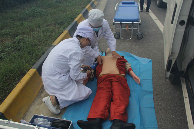 为了响应国家、省政府、省卫计委关于“安全生产工作”的指示,做好“十一”放假期间突发性公共卫生事件的应急处理,提高医务人员对突发性公共事件的应急反应能力、报告意识和处置能力。9月30日上午,我院组织了一次“应急急救演练”。这次演练主要由刘锦程院长、高彦斌副院长、仵倩红副院长及临床、护理、行政后勤等职能科室共计20余人参加演练。