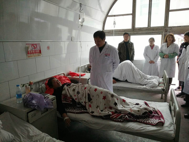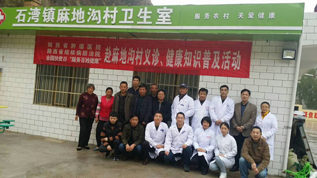 为实现“两个百年”奋斗目标,确保2020年全面建成小康社会。为打赢扶贫攻坚战,将健康精准扶贫落到实处,按照省卫生计生委党组的部署要求,结合全国扶贫日,10月17日我院党委书记甘昭平一行医疗专家组一大早冒着大雨会同省肿瘤医院及我院的医疗服务专家队来到帮扶点——横山区石湾镇麻地沟村为全村的百姓开展健康义诊活动。