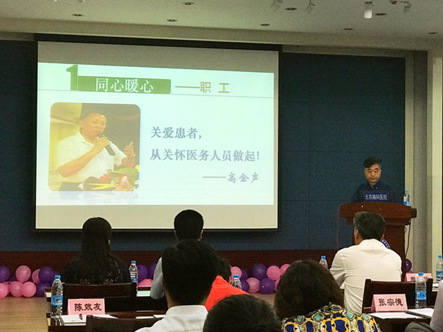 大会由武汉市肺科医院党委书记周志华主持,北京胸科医院院长许绍发做精彩致辞。许院长以“情怀、温暖、影响、力量”八字为引,旁征博引,并结合工作实践,以幽默风趣的语言精彩的讲解了文化的概念、组织管理的发展阶段、建立学习型组织的重要性以及如何抓好医院文化建设。许院长还向大家介绍了北京胸科医院“家园文化”建设的渊源与举措,希望通过此次研讨会,交流经验,共同提高,以文化建设为抓手,推动医院各项工作建设发展。
