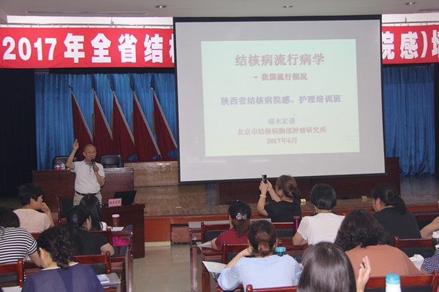 按照陕西省卫生计生委部署,陕西省结核病防治院承办的“陕西省结核病定点医院首届护理、院感培训班暨继续教育项目”于6月17日-18日在省军区招待所举行。陕西省卫生计生委疾控处处长杨保利、医政医管局副处长张一力、首都医科大学附属北京胸科医院原院长全国结核病首席专家端木宏谨教授、护理部主任王秀华教授、陕西省结核病防治院院长刘锦程出席开幕式。来自陕西省省级、市、县、镇、村五级结核病定点医疗机构近200名医护人员参加了本次培训。