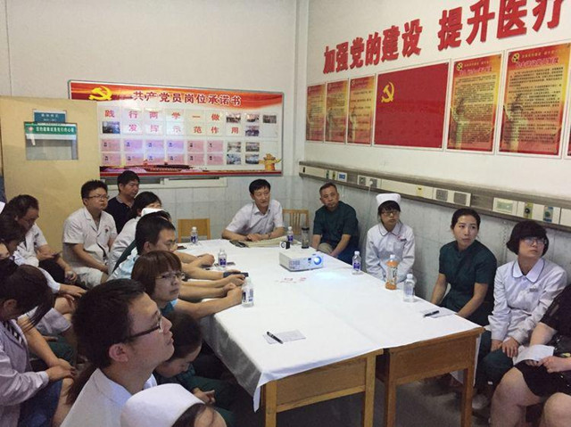 在渭南市中心医院传染性疾病科会议室,省结核病防治院副院长、耐药结核科主任仵倩红、外科主任陈其亮结合临床实例,分别就《耐药结核病的治疗》《结核病的外科治疗》的国际国内最新进展,向全体医护人员做了详尽分析讲解。