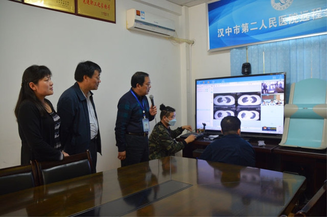 同时,刘锦程院长,甘先锋书记陪同胡宝兰副局长现场观看,汉中二院呼吸结核科李本珍医生团队,与省结核病防治院副院长仵倩红医生团队借助远程会诊平台讨论疑难病例。
