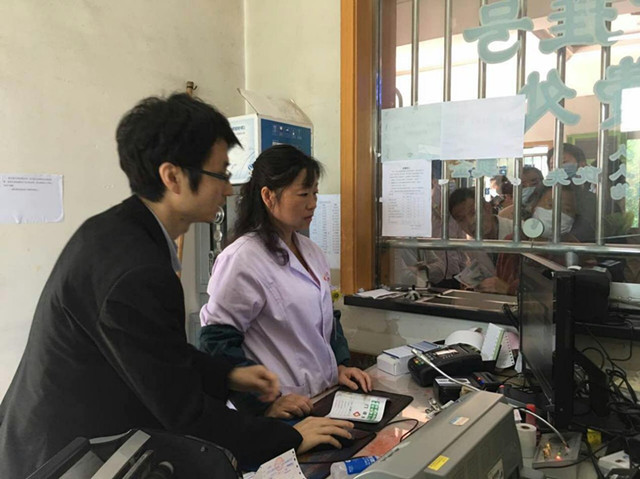 5、4月26日早7点30分,在软件工程师的指导下,收费人员使用新收费系统办理第一个挂号业务。