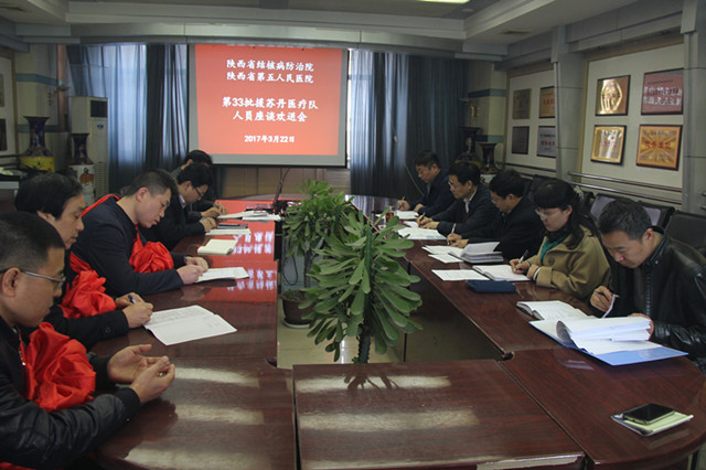 3月22日上午,我院在行政楼二楼召开援苏丹医疗队人员座谈欢送会,全体班子成员、相关职能部门、医务科、外科、放射科和援苏丹医疗队员陈晨、梁矿立、许军利三位同志参加了会议,欢送会由仵倩红副院长主持。