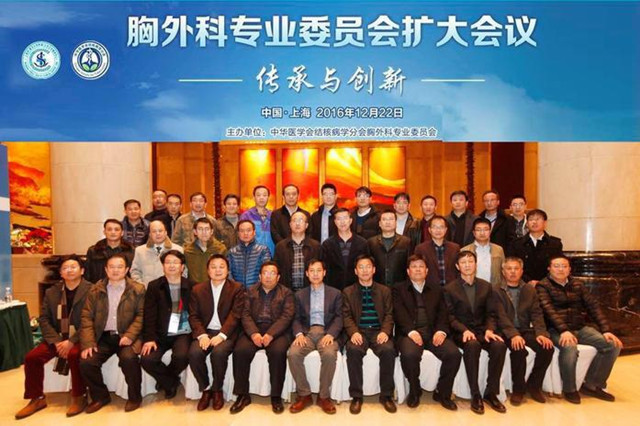 2016年12月22-24日,迎着新年的节日气氛,由上海市(复旦大学附属)公共卫生临床中心胸外科、中华医学会结核病分会胸外科专业委员会联合主办的“2016年中国结核外科论坛暨第二届《结核病外科诊疗新技术进展专题研讨会》”在上海顺利召开,我院外科在陈其亮主任带领下一行三人与来自全国结核外科领域的300余名代表共同参加了此次盛会。中华医学会结核病学分会胸外科专业委员会于12月22日晚召开了第一届全委会会议,会议由主任委员金锋教授主持,宋言峥主任委员介绍了整个会议的筹备过程,中华医学会结核病分会候任主任委员李亮教授作重要讲话,我院外科陈其亮主任参加了会议。与会者积极热烈地探讨了中国结核外科今后发展,提出增进国际国内交流、人才培训及多中心合作、数据库建立等重要事宜。