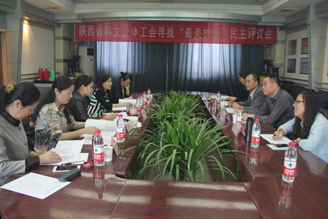 4月26日下午,陕西省科文卫体工会一行在我院行政二楼会议室召开了寻找“最美护士”民主评议会议。