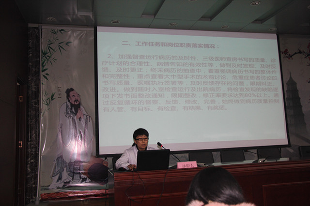 全院30个临床、医技、行政职能科室负责人逐一汇报了2015年工作完成情况,同时对2016年工作进行了规划。经过5个多小时紧张而有序的述职汇报,会议达到了总结成绩、查找不足、相互交流促进的目的,并现场进行了民主测评打分。