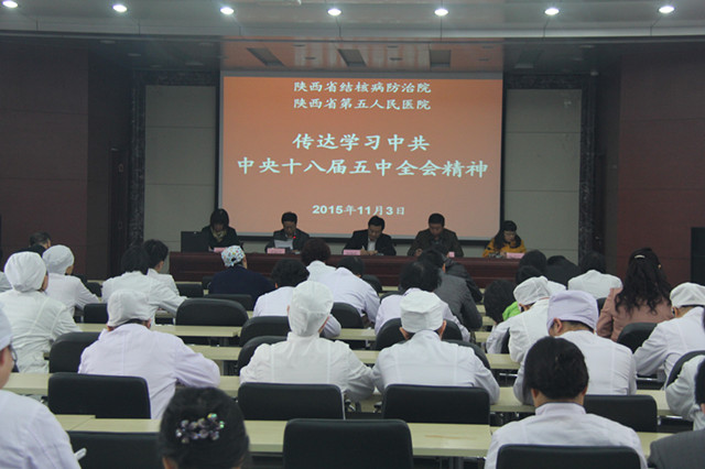 11月3日下午,我院在学术厅召开了学习贯彻党的十八届五中全会精神的会议。院领导班子成员、中层干部、护士长和副高以上职称人员参加了会议,会议由刘锦程院长主持。