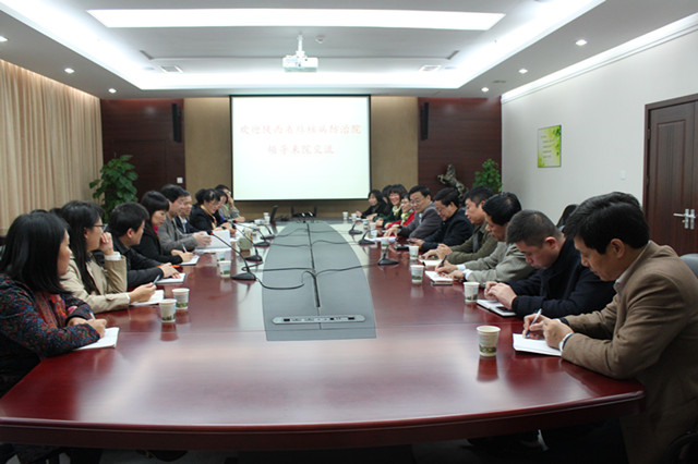 陈学文院长对我院一行人员表示欢迎,并表示陕西省人民医院和我院同为省卫计委直属单位,陕西省人民医院为西北特大型三级甲等医院,无论在学科建设、人才培养及其他有需要的方面都将全力支持、全面协作、给予帮助。陈院长还从大型医院管理创新研究、学科融合、专业靠近十三个专科医院设立、落实两升一降、五位一体交叉管理、后勤一站式服务、加强财经四收、科学分配成本核算、制度创新、督办制度及机关联络员制度、探索管理、创新管理十个方面就省医院工作的快速发展做了简要的介绍,并殷切的希望我院面对新形势的医改要着眼长远、立足自身、科学发展,并就准确定位、综合创伤双向转诊、加强投入、美化环境、关爱职工、加大保障、加强管理,优势专业建立、人才培养、分级诊疗、尽快形成陕西结核的龙头品牌等方面提出了建设性意见。