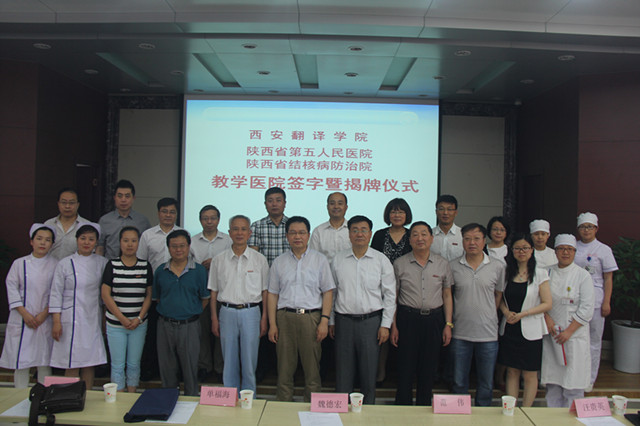 5月27日,在我院学术厅举行了我院与西安翻译学院建立教学医院的协议签署及揭牌仪式。我院党政领导班子成员、中层干部、各科护士长、西安翻译学院院长、副院长及部分职能科室领导参加了签约仪式,陕西省卫计委刘岭副主任及部分处室领导应邀出席此次活动。签约仪式由我院甘昭平书记主持。