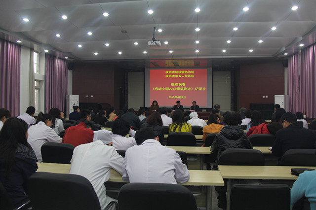 在观看前,甘昭平书记讲到:今天组织全院职工观看《感动中国2015》颁奖晚会纪录片的目的是,通过观看纪录片使全院干部职工树立正确的人生观和价值观,增强全局观念和大局意识;一如既往继续从本职工作岗位做起,从身边小事做起,从自身做起,全心全意解除患者病痛,做好结核病的诊治和服务工作;学习先进人物的先进事迹,向先进人物学习看齐,将这种精神感动转化为我们工作动力,转化为人生路上的“加油站”,把为患者的服务落实到具体的行动中。