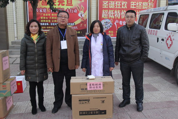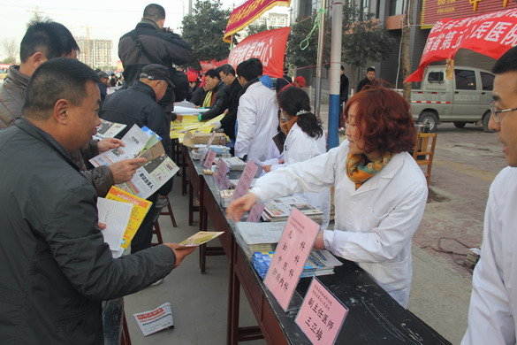 2月11日,我院“下乡”人员不顾初春寒冷,一行9人由刘锦程院长带队,来到渭南华县瓜坡镇活动现场。布置活动现场,搬运捐赠药品、宣传资料、悬挂横幅,一切准备工作紧张有序进行。医院专家们热情接待每一位群众,接受群众的咨询,诊疗查体,发放结核病防治资料宣教。宣教卫生健康教育、控烟等常识。