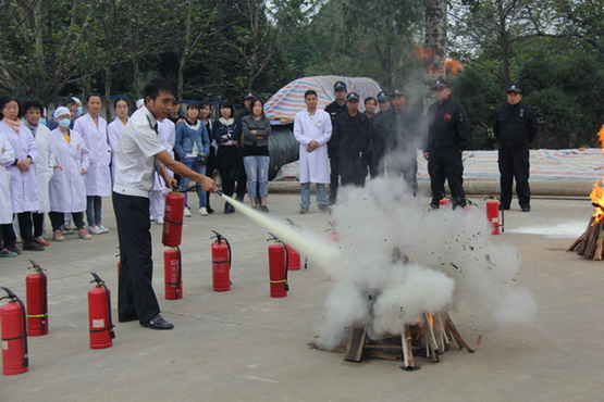 在实战演练前,医院要求大家在消防安全问题上不要抱有侥幸心理,随着社会经济和综合技术的发展以及由此引起社会活动方式的改变,发生火灾的机率越来越大,重视消防就是重视经济效益,一定要坚持以预防为主,把不安全因素消灭在萌芽状态。高彦斌副院长要求大家要时刻树立消防意识,保持警钟长鸣,防患于未然。随后,徐教官向职工详细讲解了灭火器的使用方法。
