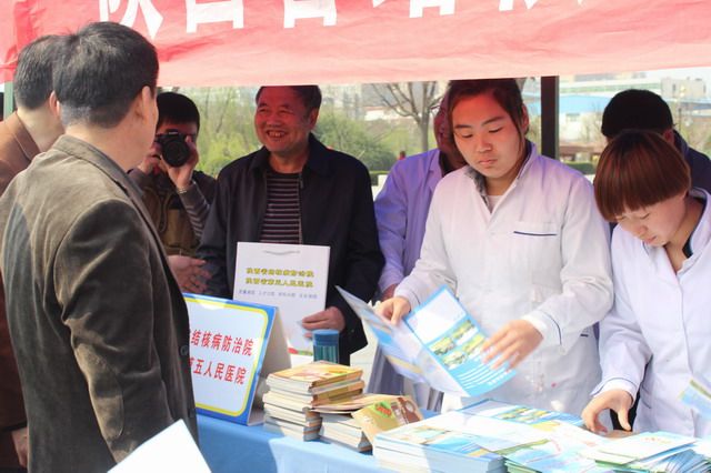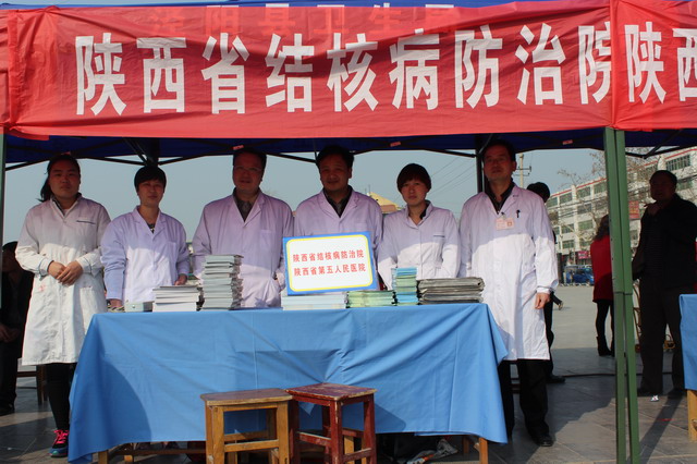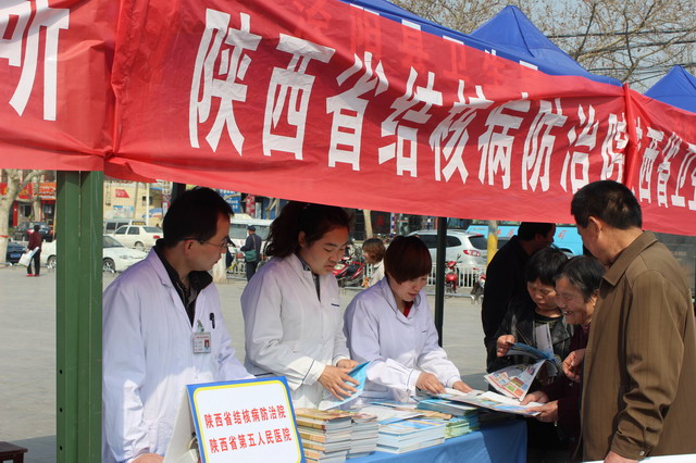 3月24日上午,由省卫生计生委组织实施,咸阳市及泾阳县人民政府、卫生局、疾控中心及有关医疗单位共同参与的第19届“世界防治结核病日”大型宣传活动在泾阳县泾干湖公园广场举行, 省卫生计生委张建平副巡视员出席活动。 我院牛国强副院长带领医务科、临床科室主任、结核病防治专家一行10人到达活动现场。活动现场, 20多家综合医疗机构为群众义诊并发放宣传知识资料。本届“世界防治结核病日”的主题是“你我共同参与,依法防控结核”。 张建平副巡视员指出,结核病是一种经呼吸道传播的慢性传染病,在全球广泛流行,严重危害着广大人民群众的身体健康,已成为重大的公共卫生问题和社会问题。他强调预防结核病最主要的措施就是及时发现和治愈传染性肺结核病人,宣传结核病防治知识和国家的相关政策十分重要。他要求各级卫生部门要认真贯彻落实结核病防治“十二五”规划,严格依据《传染病防治法》和《结核病防治管理办法》开展防治工作。他希望社会各界、广大志愿者和媒体朋友继续支持结核病防治工作,取得更好的成效。 活动现场进行了精彩的文艺表演和结核病防治知识有奖答题活动,现场的群众和志愿者还进行了签名宣誓等活动。活动期间,共接待群众咨询215余人次,查体50余人次,发放各种结核病防治宣传资料500余份。 为前来参加的群众医务诊疗,接受群众咨询,开展健康教育,科普宣传,受到现场群众的热烈欢迎。
