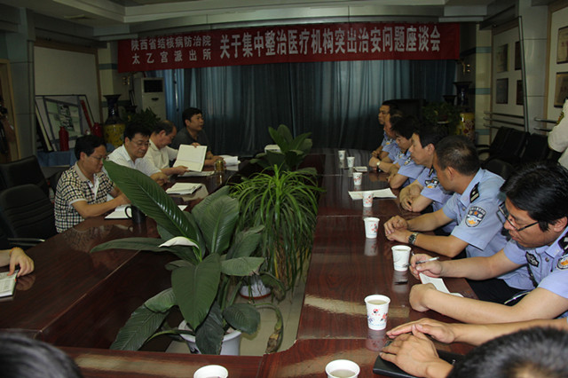 为了贯彻落实卫生部、公安部《关于维护医疗机构秩序的通告》和省卫生厅、省公安厅下发的《关于进一步加强医疗机构治安防范维护正常医疗秩序的通知》精神,及落实“2013.平安三秦”的“秦安行动”,切实维护医院正常工作秩序,保障医患双方合法权益及医院财产安全,最大限度减少涉医案件发生。7月3日,我院与太乙宫派出所在我院行政二楼会议室举行了关于集中整治医疗机构突出治安问题工作座谈会。我院领导班子成员与行政职能科室负责人、太乙宫派出所所长张民儒、指导员白东阳、副所长丁小红、孙伟及相关警务人员参加此次座谈会。会议由副院长高彦斌主持。