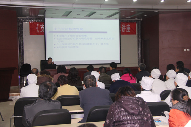 为更好地提高我院专科医疗质量和科研水平及开展新技术,日前,我院邀请全国结核病知名专家傅瑜和翁春晓教授来我院学术讲座,并深入临床科室进行业务指导。 3月1日上午,傅瑜、翁春晓两位教授在院领导及医务科长的陪同下,做了业务查房,两位教授对各科室疑难危重病人进行了病案讨论会诊,并提出了系统的指导性的会诊意见;每到一个临床科室,都认真细致地查看低频超声药物透入新技术的临床应用情况,并现场进行操作指导和基础理论讲解。 下午2时30分,学术讲座在院学术多功能厅举行。院领导班子及全院临床、医技人员共计140人参加讲座。会议由牛国强副院长主持。 傅瑜教授进行了《支气管结核的诊断与治疗》、《支气管镜检查与治疗在结核病诊断与治疗中的应用》学术讲座,他紧密结合多自身年来的诊疗经验及接诊的具体病例从支气管结核的现状、发现、治疗方面、适应症、禁忌症、检查要求、镜下吸痰、镜下给药治疗、镜下冷冻治疗、支架、镜下气囊扩张治疗、镜下光动力治疗、镜下堵瘘治疗、镜下TBNA、OCT(光干涉断层)等方面进行了详细介绍,并对肺气肿的治疗、咯血的疗法和哮喘的治疗进行了学术辅导;翁春晓教授就使用超声药物透入技术作专题讲座,重点对该技术的注意事项做了详细的讲解。学术讲座结束后,两位教授对我院医务人员提出的问题进行了逐一解答。 院长刘锦程对两位不远千里来我院做培训和业务指导表示感谢,并对两位教授精彩的讲授予以高度赞赏。刘院长指出,这次学术讲座为我们提供了极好的学习机会,有利于促进我院医务人员业务水平的提高。要求各科室认真温习本次讲座内容,切实做到理论与实践相结合。