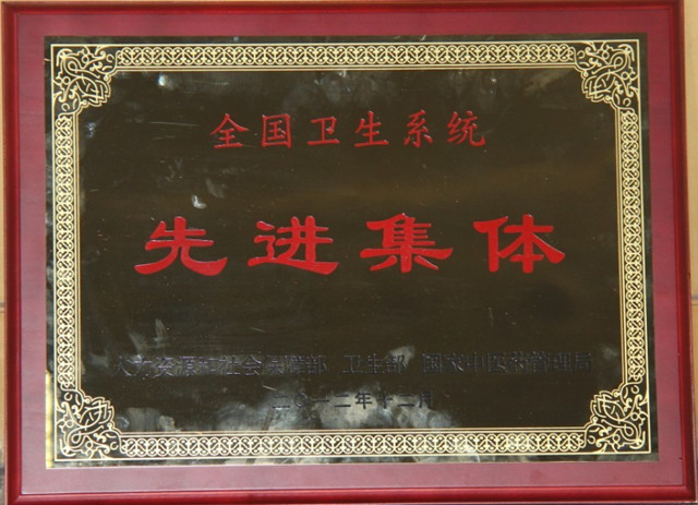 根据人力资源和社会保障部、卫生部、国家中医药管理局《关于评选全国卫生系统先进集体先进工作者及“白求恩奖章”获得者的通知》(人社部函〔2012〕165号)文件精神,省卫生厅经过逐级推荐、审核、集体研究等程序,最终将我院确定为全省先进集体单位之一,并推荐上报卫生部。2013年1月7日上午,在北京召开的全国卫生工作会议上,我院被授予“全国卫生系统先进集体”荣誉称号。我院院长刘锦程上台领奖,卫生部陈笠部长为我院颁奖。 本次评选活动由人力资源和社会保障部、卫生部和国家中医药管理局联合组织,旨在表彰先进,弘扬正气,激励全国卫生系统广大干部职工更好地为人民健康服务。希望广大干部职工要珍惜荣誉,再接再厉,扎实工作,更好地发挥先进示范作用,忠诚履行为人民健康服务的神圣使命,为卫生事业改革和发展再立新功。