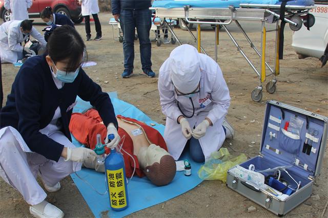 经检查,一名群众已经昏迷,心脏骤停,无自主呼吸,急救人员立即为其进行心肺复苏,5分钟后患者心跳恢复,另一名群众右侧股骨干骨折,急救人员快速为其进行患肢固定处理,随即救护车将两名受伤群众送往医院急诊科。下午3:00,2名患者抵达急诊科,此刻,各会诊科室人员已经在急诊科待命,大家根据指挥迅速进行院内抢救,重点关注昏迷患者的抢救进展,努力挽救患者生命......从院前急救到院内急救,短短半个小时,整个过程紧张有序,医护人员配合默契,节奏紧凑,围观群众无不当真,但实际上这次急救,只是一场演练。