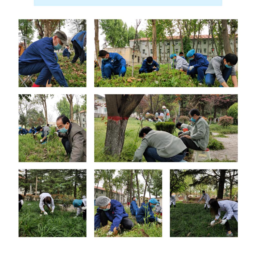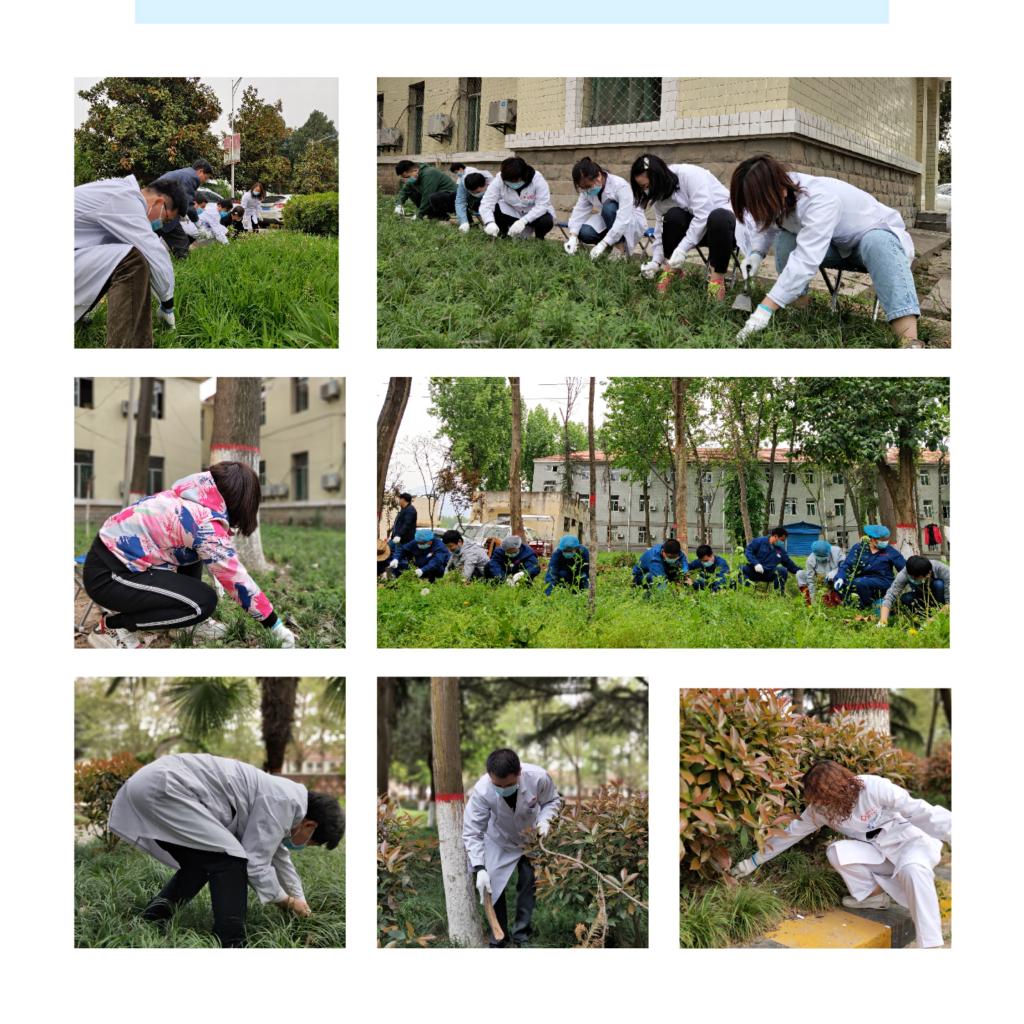 4月13日,我院在全院范围内开展主题为“让医院更美丽 让患者更舒心”的拔草除杂活动,对花园及绿化带内的杂草进行全面清除,进一步建设美丽结防院,提升就医环境,让广大患者感受更加美好的春天,拥有更加舒畅的心情。
