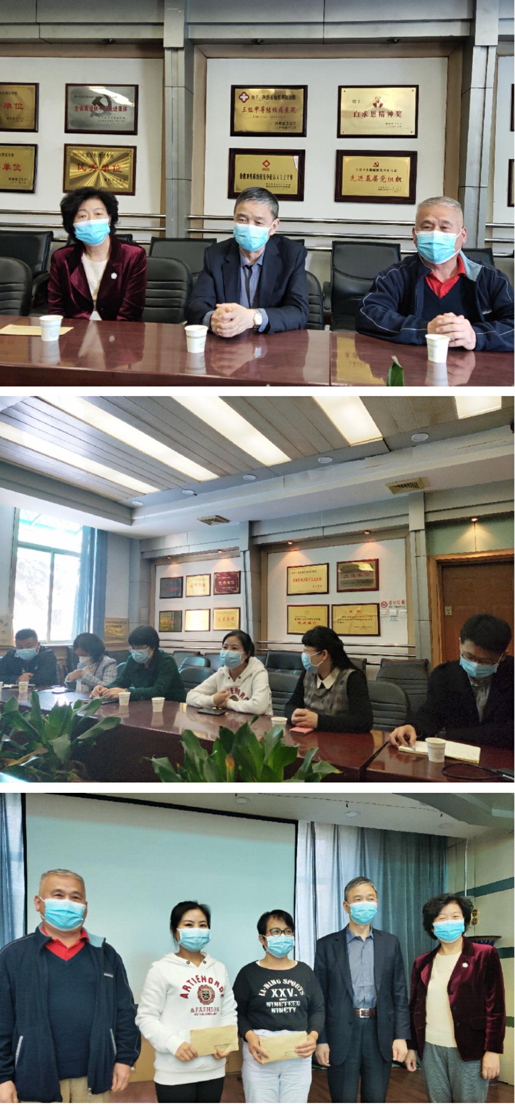 王岐山会长一行不仅代表陕西省妇促会为两人送上慰问金,并召开了座谈会,仵倩红副院长、邵魁卿副院长、总会计师汪贵英等人参会。