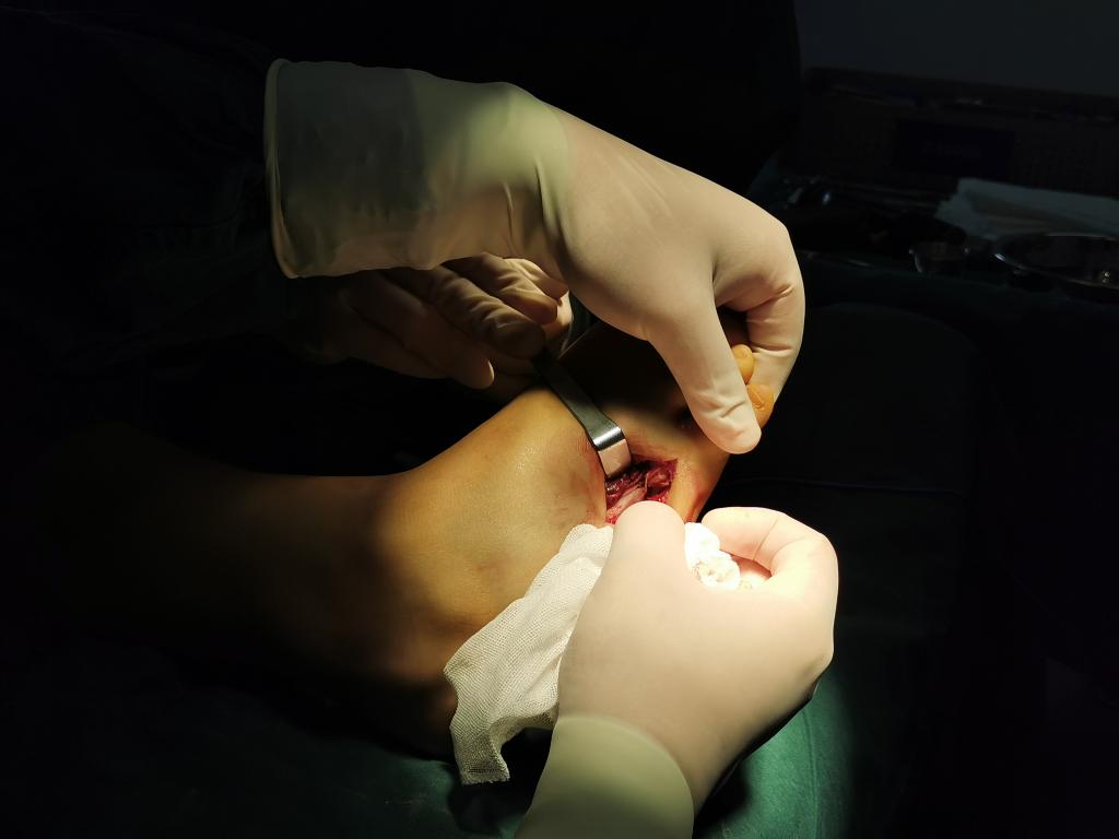 患者为年轻女性,术前希望尽可能用最小的切口,最轻的创伤,最少的出血解决她的病情,并表示不希望在自己脚上留下一道明显的瘢痕,瘢痕会极大的影响美观,让自己在同学面前感到不好意思。刘军政主任了解到这个情况后,与患者及家属充分沟通,手术专家团队进行了详细的病历讨论,做好了充分的术前准备。
