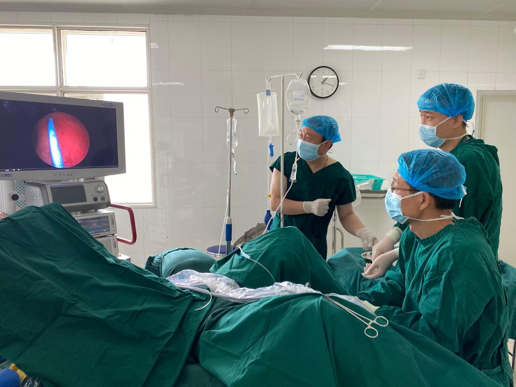 于是,在取得患者及家属认可后,医院立即制定了详细的手术计划,由邵魁卿副院长主刀,刘军政主任专家团队协作,于6月2日上午进行手术。术中经过反复尝试,最终成功在患者患侧输尿管置入导丝,并顺利置入输尿管导管,术中彩超显示输尿管置入位置良好,手术圆满完成。