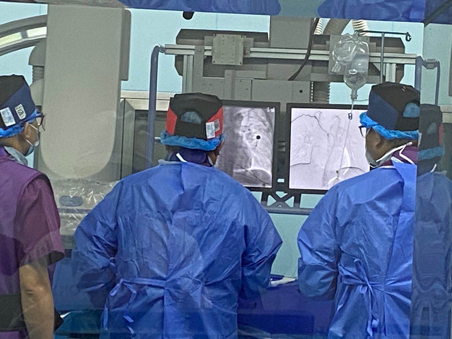 6月3日,在院领导的大力支持和推动下,我院大C机房正式运行,介入科彭怀玉主任专家团队在血管造影X射线机的引导下,成功为两位咯血患者行支气管动脉栓塞术。