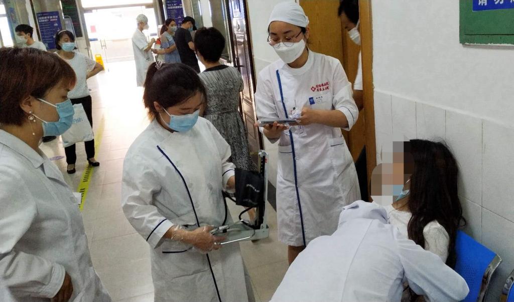 当时,患者晕倒后并发生抽搐,面色、口唇苍白,全身冒冷汗,意识不清, 我院护士、门诊导医以及出诊医师发现后,立即将患者扶至候诊椅,后逐渐意识清醒,自诉全天未进食,护士迅速测量血压、脉搏,刘莉主任仔细问诊,考虑为低血糖反应,导医杜雨怡从急救车快速拿出两支葡萄糖注射液给患者口服,症状逐渐缓解,询问无特殊不适,期间医保科的工作人员送来牛奶、糖果等给患者补充能量,很快精神状态好转,大家一起将患者转移到诊室卧床休息,专人陪护,护士代办出院后,医院专车送回学校。