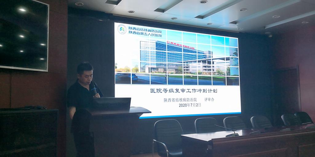 会上由仵倩红副院长组织学习了《关于调整三级结核病专科医院等级复审领导机构的通知》(陕结院发〔2020〕63号)。甘昭平书记做动员讲话,等级复审工作进入冲刺阶段,时间紧、任务重,要求大家充分认识三甲复审工作对医院发展的重要性和必要性,狠抓落实,加强管理和督查,进一步完善责任机制、考核机制、奖惩机制。周密安排,精心组织,做好迎接现场评审的各项准备工作。