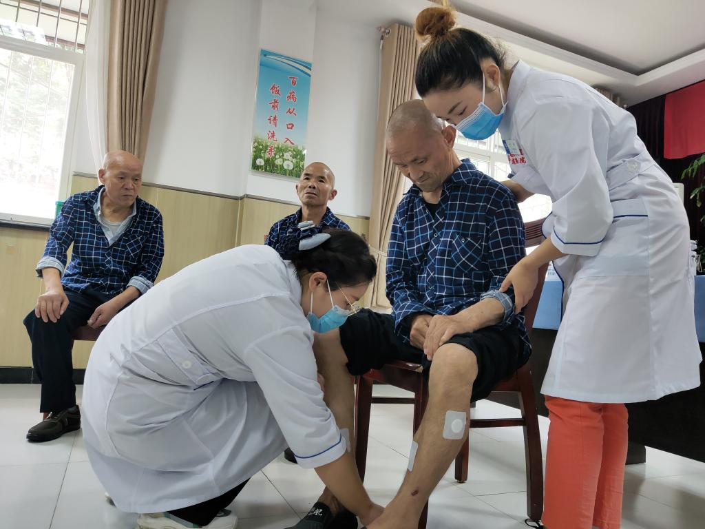 王莽区域养老院收住的多为无儿无女且伴有不同程度智力障碍的五保老人,是政府脱贫攻坚的重点对象。看到医护人员到来,老人们显得格外开心,而医护人员则耐心仔细地询问、了解每一个人的身体状况,一字一句,不紧不慢,为老人建立健康档案,同时望闻问切,辨证贴敷,现场制作了失眠贴,送给在场的每一个老人,让大家乐开了花。
