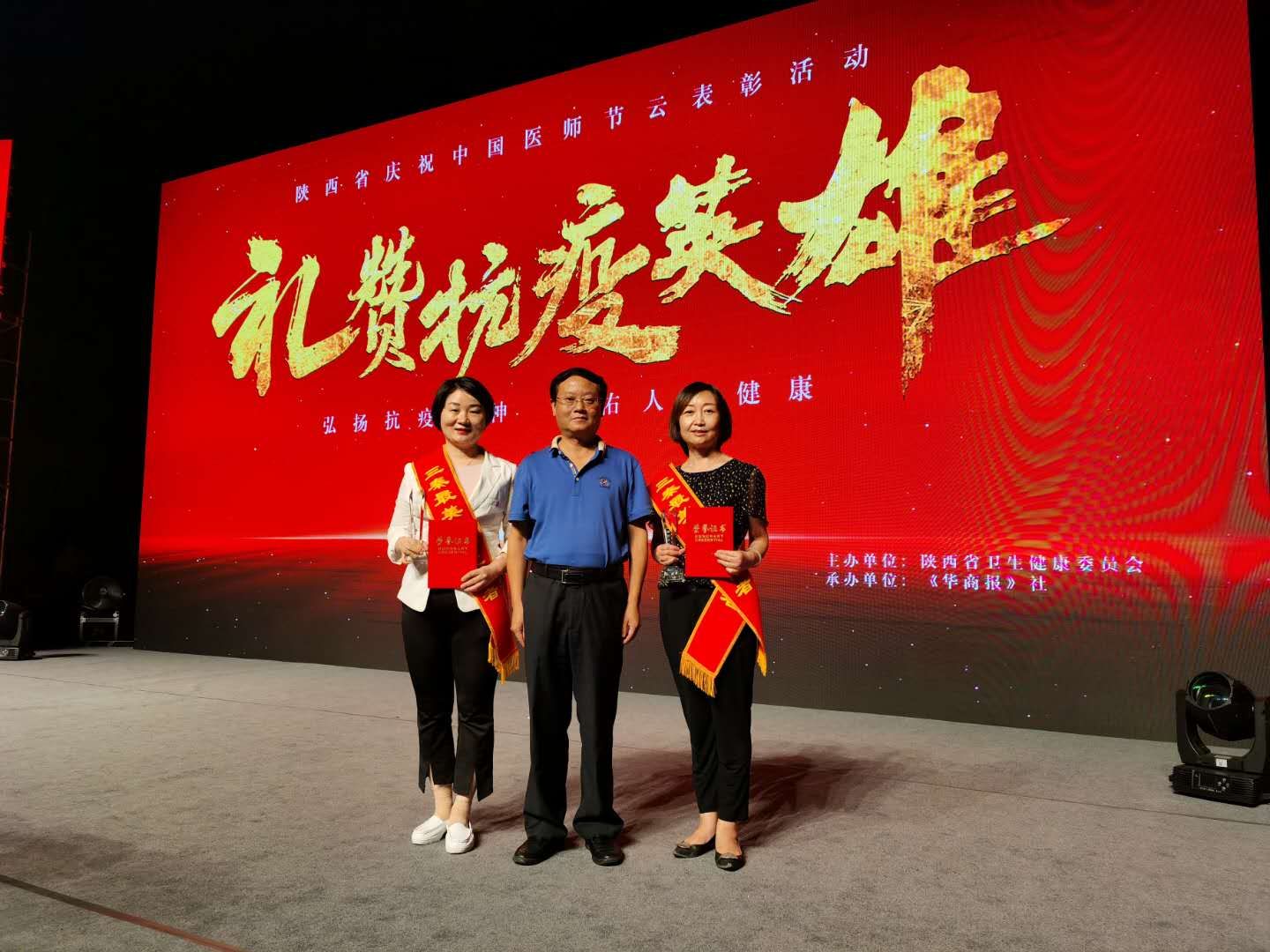 8月18日下午,“礼赞抗疫英雄·陕西省庆祝中国医师节云表彰”颁奖典礼在西安索菲特人民大厦大剧院隆重举行,陕西省结核病防治院刘红艳主任医师、杨薇主管护师同时获得第四届“三秦最美医务工作者”荣誉称号。