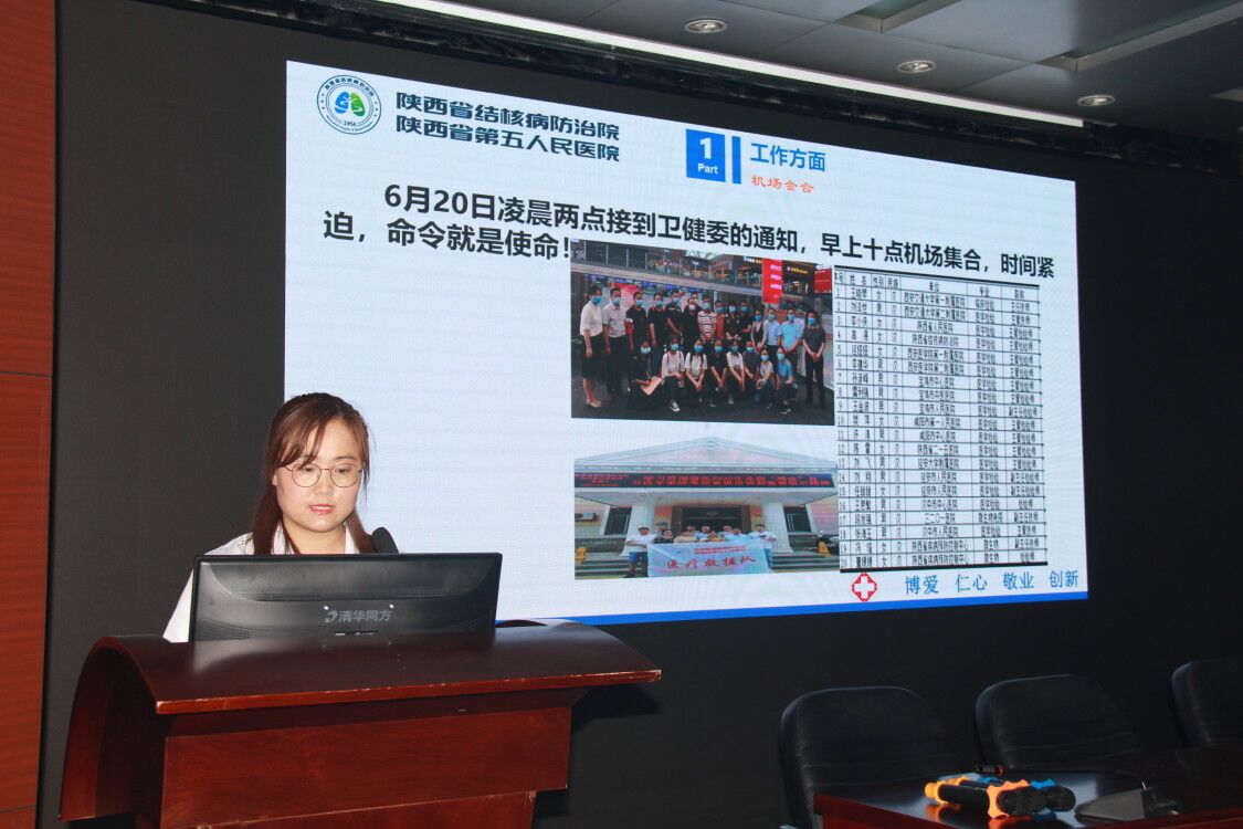 在援汉、援京先进事迹汇报会上,援汉医疗队员刘红艳主任医师、国福云副主任医师、万月强副主任医师、王欣主治医师以及援京医疗队员高漫主治医师进行了形象生动、感人肺腑的个人先进事迹汇报。