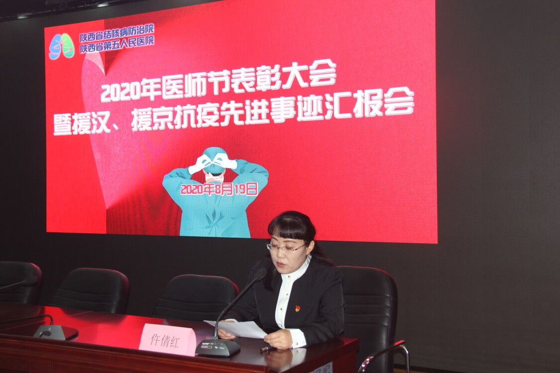 在2020年医师节表彰会议上,高彦斌副院长宣读了《关于表彰2020年“医师节”获奖集体和个人的通知》(陕结院发〔2020〕101号)文件,表彰了在疫情防控工作中表现突出的集体和个人以及在医师节系列竞赛活动中获奖的个人,具体名单如下: