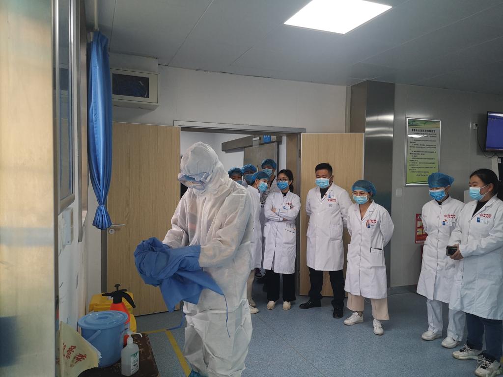 为落实《西安市应对秋冬季新冠肺炎疫情医疗救治工作方案》要求,扎实做好秋冬季可能出现的新冠肺炎疫情医疗 救治准备工作,我院于2020年11月19日15:00组织进行了新冠肺炎预检分诊发热患者应急处理演练,演练由医务科唐浩暅科长主持,医务科、感染办、护理部、发热门诊、预检分诊、隔离病区、检验科、放射科、功能科、司机等多部门共同协作参与。