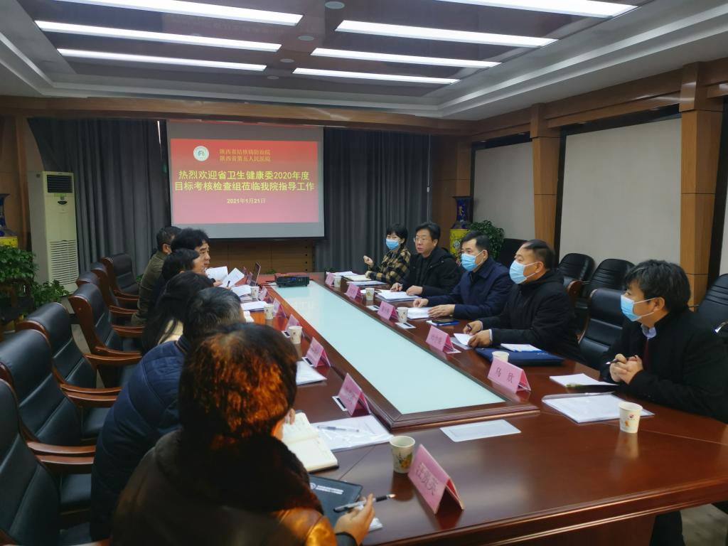 1月21日,陕西省卫健委蔺全锁副主任带领老龄健康处师中荣处长、委机关纪委李炫秦书记一行5人来我院进行目标任务考核。蔺全锁副主任对本次考核目的、考核内容、考核方法等作了详细说明,并就做好考核工作提出了具体要求。党委书记甘昭平,院长魏海龙分别做了简要工作汇报,班子成员以书面形式提交了述职述廉报告。