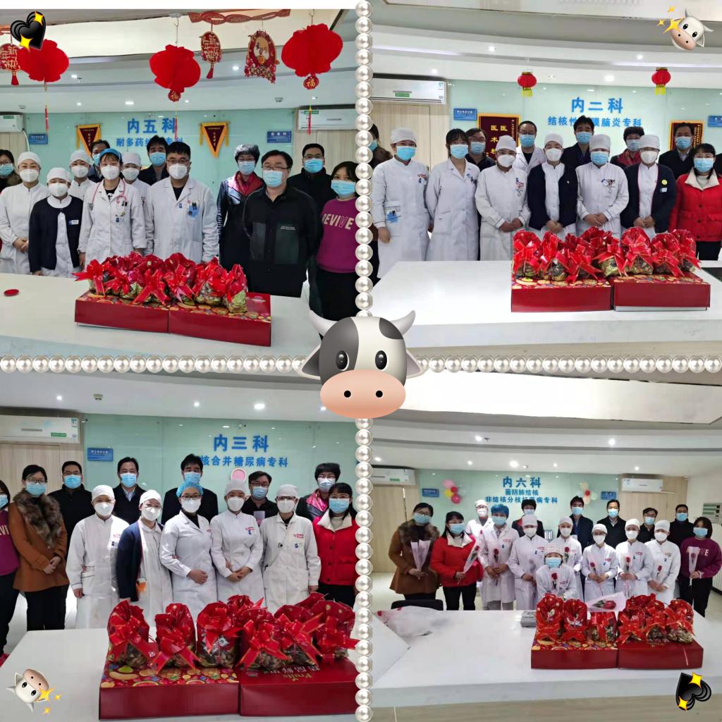 新年钟声在耳,新春佳节又至,2月11日除夕当天,我院党委书记甘昭平、院长魏海龙携院领导班子成员及院办、党办等相关科室负责人亲切看望并慰问了春节假期坚守在一线的医务人员,向他们送去慰问品的同时致以亲切的问候和诚挚的祝福。