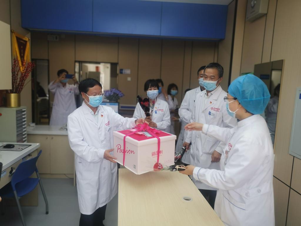 “节日快乐!”“大家工作辛苦了!”每到一处,院领导都亲切问候着每一位护理人员,并亲自将蛋糕和鲜花送到大家的手中,与他们悉心交谈,共享节日的甜蜜与喜悦。慰问中,院领导对护理人员全力以赴做好临床护理工作、为病人提供细致入微、关怀备至的优质护理服务给予称赞和感谢,并希望我院护理人员能够继续发扬和继承南丁格尔精神,充分展示当代护士新风采,使医院护理事业更上新台阶。