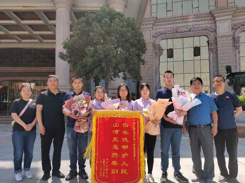 去日春寒料峭,归时夏意盎然。5月6日,我院高漫、朱蕾、李蒙、刘玉龙、屈少毅5名援吉林长春的核酸检测队员结束了返陕后的集中隔离,回到了离开50个日日夜夜的家中,副院长高彦斌及院办、医务部、检验科相关人员到隔离酒店接回队员。