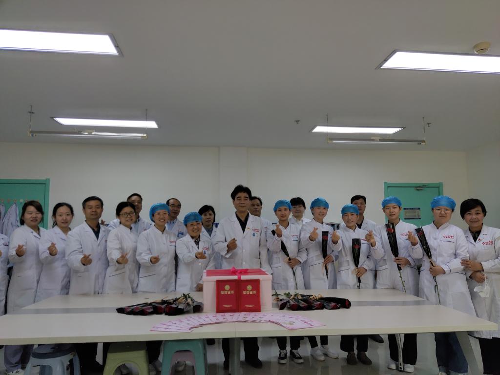 “节日快乐!”“大家辛苦了!”5月12日上午,我院党委书记甘昭平、院长魏海龙等院领导班子成员带领职能科室负责人分三组深入临床、医技、预检分诊、发热门诊、手术室、消毒供应中心等科室,为全院护理工作者送去鲜花蛋糕以及慰问信。每到一处,院领导都亲切问候着每一位护理人员,感谢他们为患者的健康和医院发展做出的辛苦努力。当天,还对2021年度3个明星护理科室、23名护理之星及4个优秀院级护理质控小组进行了表彰。其中:明星护理科室为内一科、内六科、内七科;护理之星为霍婷婷、谢秀秀、李孟娜、翟亚楠、雷艳、孟盼、董飞凤、罗珊、马云、李妍、王萌、卫雯艳、梁静、耶瑶、李巧宁、王芬、张艳利、冯欢、胡新颖、钟山山、罗延莉、凌晓妮、李佳;优秀院级护理质控小组为急救管理小组、护理服务小组、心理护理小组、糖尿病护理小组。院领导对获奖个人及团队表示祝贺,鼓励他们再接再厉,再创辉煌,同时号召全院护理人员向先进个人和集体学习,为医院发展贡献更大的力量。