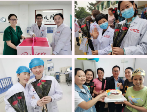 一束束鲜花,一声声祝福,是温暖更是鼓励!现场的每一位护理人员都备受感动,纷纷表示一定不会辜负医院的期望,在以后的工作中一如既往恪尽职守,服务好每一位患者。护理前辈王宝珍老师说:“这是我的第36个护士节,也是我在医院的最后一个护士节,今天收到了医院的慰问、鲜花和蛋糕,让我感受到了咱们医院大家庭的温暖,我将尽职尽责站好最后一班岗,为自己的职业生涯划上圆满的符号。”新进护士王青青开心的说:“这是我护理生涯的第一个节日,收到院领导送给我们的鲜花、蛋糕与祝福,我觉得好开心!我会铭记这一刻、珍惜这一切,努力做好本职工作,不辜负“白衣天使”的美名,为医院的发展贡献自己的力量!”
