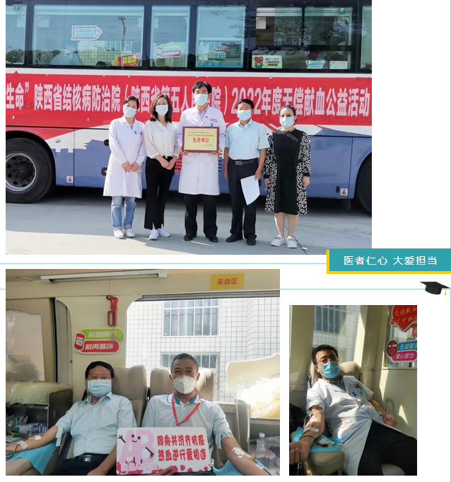 活动在学术厅举行,医务人员们早早就来到了献血现场,在工作人员的引导下排队、填表、体检......现场人潮涌动,气氛热烈。院领导率先垂范,和全院医护人员、行政后勤人员一起行动,用爱心为保障人民群众的身体健康和生命安全贡献一份力量。此次活动全天参与112人,实际献血103人,献血总量31600毫升。西安市血站为我院颁发了2021年度献血先进单位奖牌。