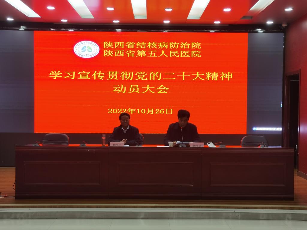 就下一步学习好、宣传好、贯彻好、落实好党的二十大精神,甘昭平书记要求:一是各党支部、各科室要及时传达动员大会精神,迅速掀起学习宣传贯彻党的二十大精神的热潮,牢固树立“四个意识”,在政治立场、政治方向、政治原则、政治道路上同以习近平同志为核心的党中央保持高度一致,深刻领悟“两个确立”的决定性意义,更加忠诚践行“两个维护”,切实学懂弄通做实习近平新时代中国特色社会主义思想,把党的创新理论转化为推动我院事业高质量发展生动实践。二是(党办牵头)按照中、省及省卫健委的统一安排,研究制定好我院具体学习宣传工作方案,认真抓好学习安排,做好中心组、党支部、科室等各级学习培训的部署推动;三是各党委委员和党支部书记以身作则、率先垂范,带头在支部进行宣讲暨党课辅导,指导、帮助广大党员和干部职工全面深刻领会党的二十大的主题,学深悟透精神实质,准确把握精髓要义,做到真学真懂真信真用;四是(人事科牵头)要将学习宣传贯彻党的二十大精神情况列入年度目标考核,会同党办、纪审科加强督导,防止出现以会议落实会议、以文件落实文件的现象,不能空喊口号、流于形式;五是(党办、院办牵头)结合行业和我院实际,深入开展宣传工作,要突出重点、加大力度、形式多样,及时宣传各党支部、各科室学习贯彻的具体举措和实际行动,注重反映领导干部、基层职工群众学习贯彻的典型事迹和良好风貌,广泛吸引干部群众积极参与,在全院形成学习宣传贯彻党的二十大精神的浓厚氛围;六是抓好贯彻落实,确保党的二十大精神在我院实际工作中落地见效。各部门在工作中要以党的二十大精神为指引,坚持习近平新时代中国特色社会主义思想指导地位找准切入点,精准发力、综合施策,坚决落实“疫情要防住、经济要稳住、发展要安全”的要求,持续提高医疗质量和医疗安全,以省公卫中心(一期)项目的交付使用为契机,找准转型点,抢抓发展机遇。